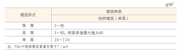 4、鍍層可供重量范圍如下表的規(guī)定
